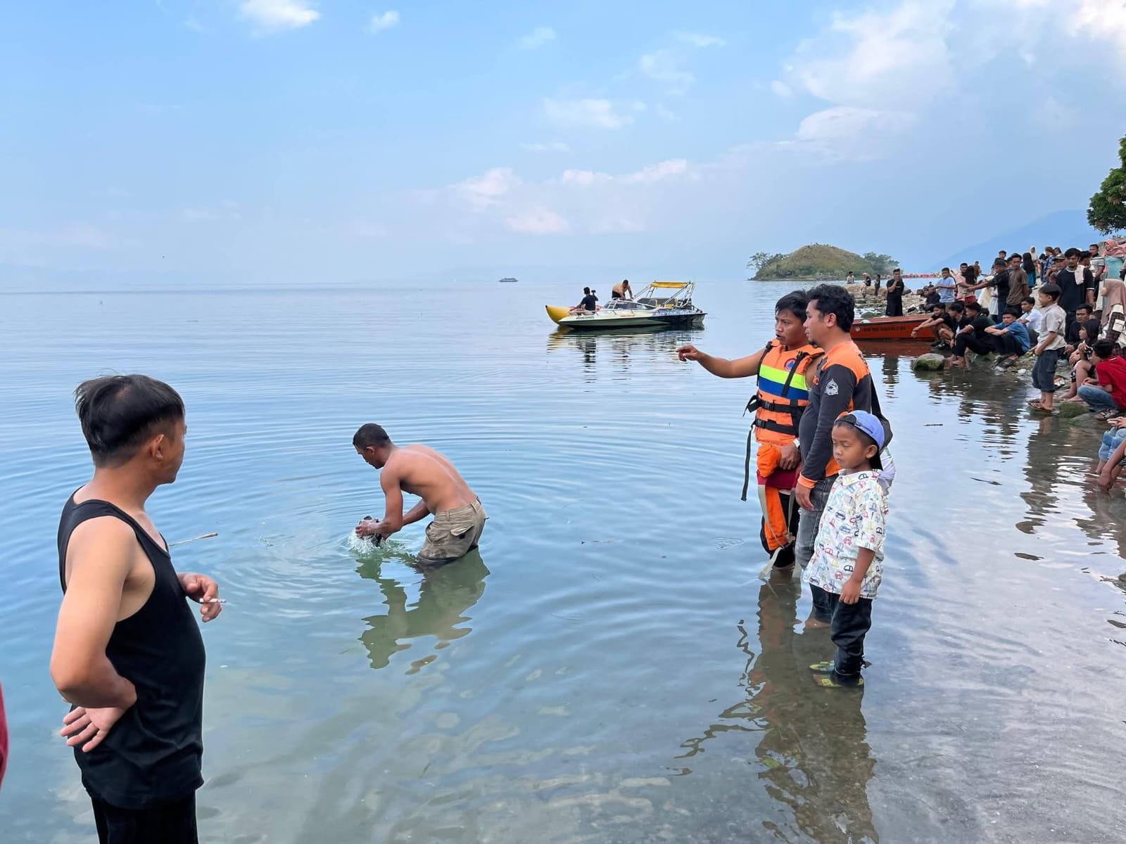 Melihat saudaranya tenggelam, lalu mereka melaporkan kejadian ke pengelola pantai dan seterusnya kepada pihak Kepolisian dan personil BPBD.