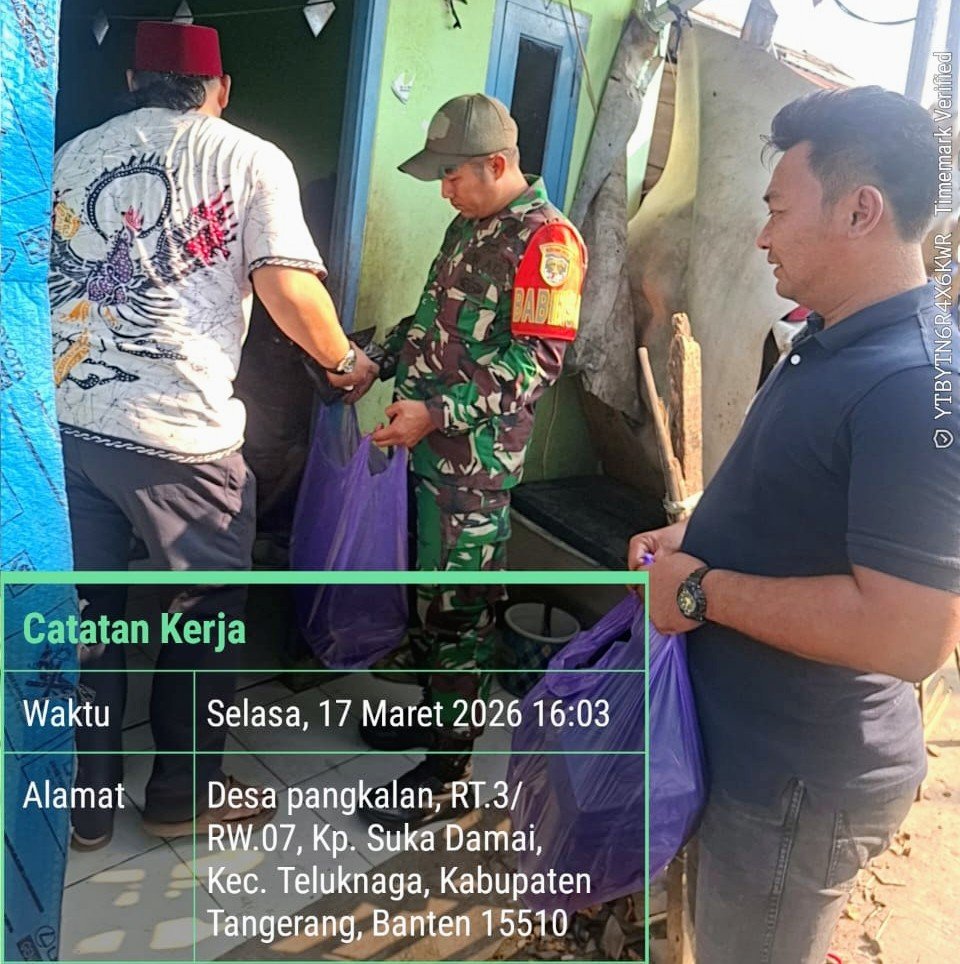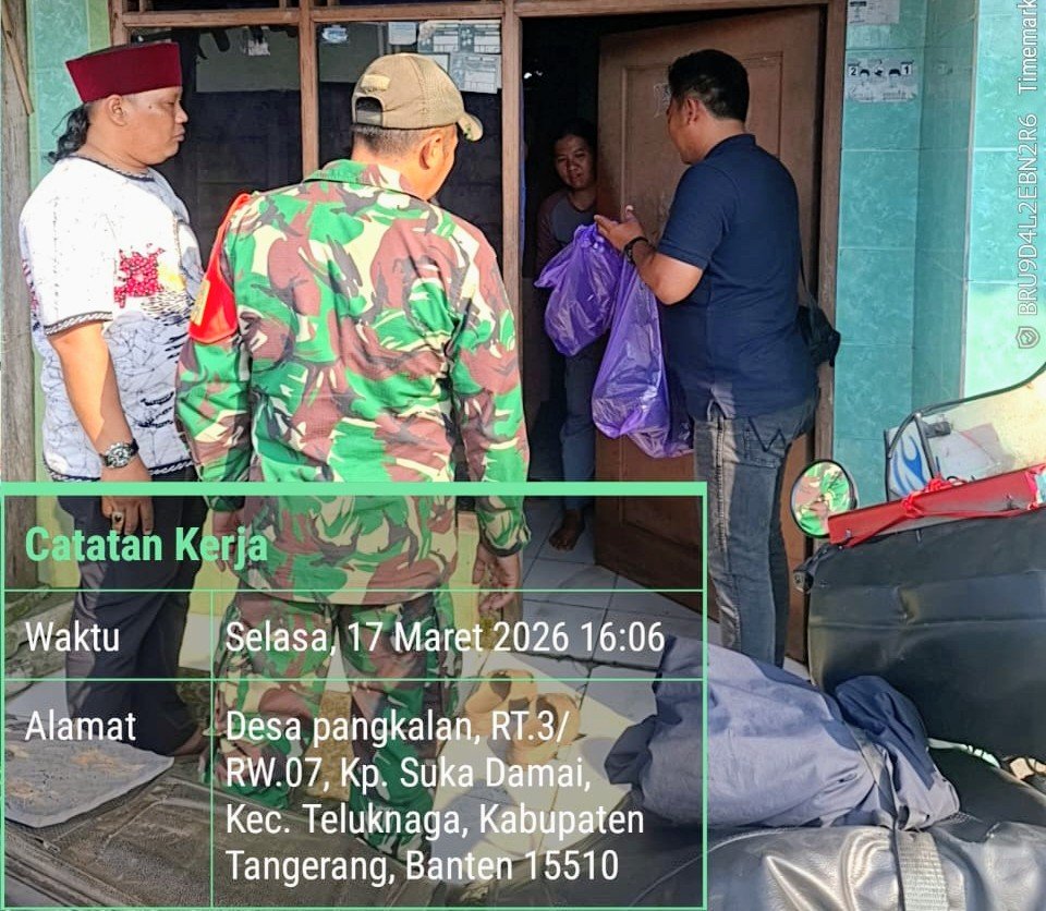 Tanggerang, – Radargempita.co.id – Team Intel KOREM 052/WKR bersama Babinsa beserta jajaran membagikan Takjil gratis kepada warga Desa Pangkalan, kp. Suka damai RT 03/07, kec. Teluknaga, kabupaten Tanggerang,Banten pada hari Selasa tanggal 17 Maret 2026,