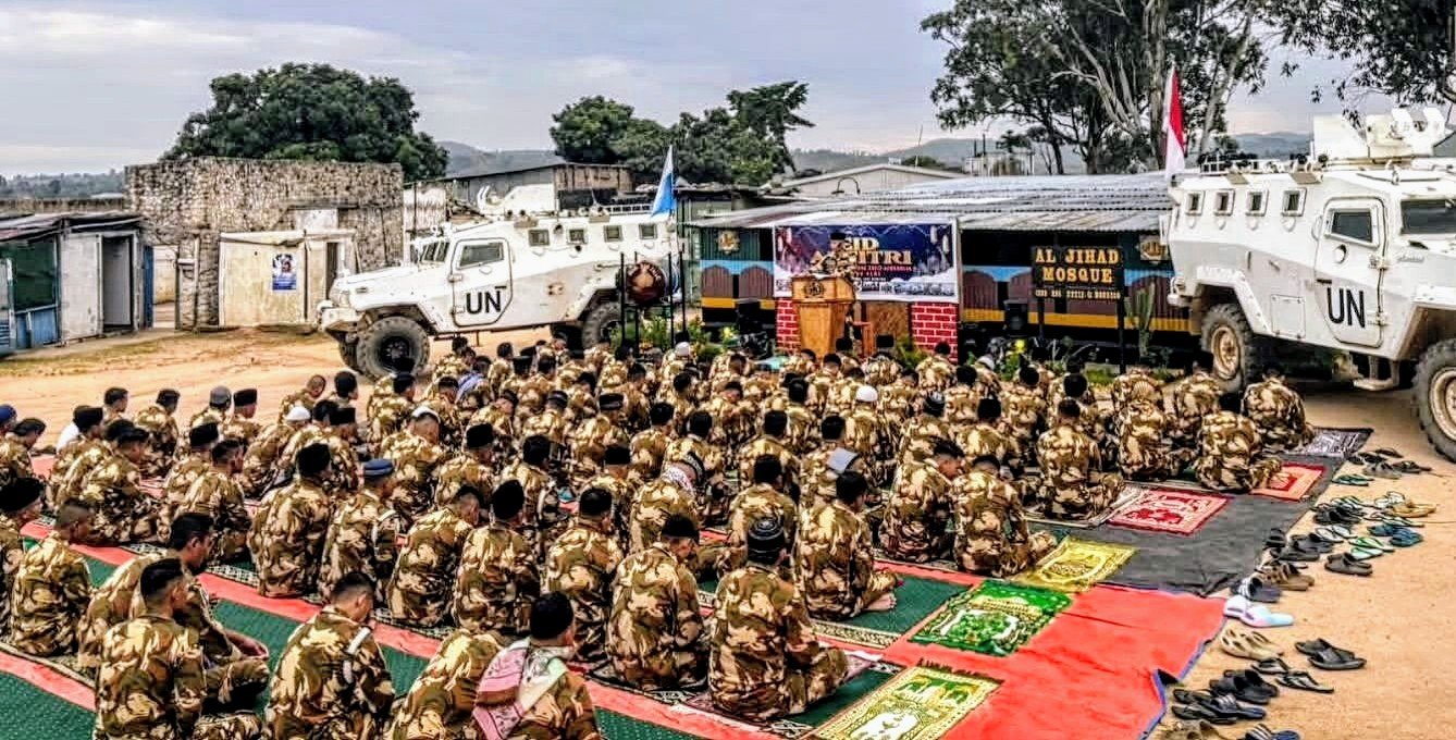 Internasional, – Republik Demokratik Kongo || Prajurit TNI yang tergabung dalam Satgas INDORDB XXXIX-G MONUSCO merayakan Idul Fitri 1447 H dengan penuh khidmat di daerah penugasan, Jumat (20/03). Meski jauh dari keluarga di tanah air, pelaksanaan Sholat Idul Fitri tetap berlangsung dengan suasana hangat, penuh kebersamaan dan kekeluargaan.